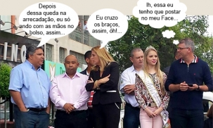 O clic é de sábado, no desfile de aniversário de Campo Mourão. A prefeita Regina Dubay aproveitou para colocar a conversa em dia com o coordenador geral da prefeitura, Carlos Garcia. O secretário da Saúde, Márcio Alencar, ficou no meio, e o vereador Edilson Martins captando tudo pelo celular...