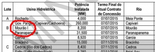 Ao todo vão para venda 28 hidrelétricas, sendo duas da Copel – a Mourão I e a Parigot de Souza, em Antonina.