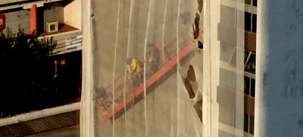Susto na tarde desta terça-feira nas obras de reforma do edifício Antares, no calçadão, centro de Campo Mourão. Uma corda do andaime se soltou e dois operários ficaram pendurados na altura do sexto andar. O Corpo de Bombeiros foi chamado, subiu até o teto e conversou com eles. Os dois conseguiu descer numa espécie de rapel. Sem ferimentos, nem nada. Só o susto. E que susto!...
