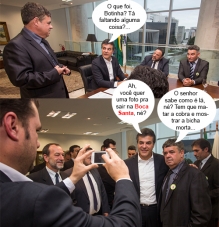 Olha aí mais cliques da visita que membros da diretoria da Acampar fizeram quarta-feira ao governador Beto Richa, em Curitiba. Entre eles estava o vereador Osmar “Botinha”, de Peabiru, que fez até pose ao lado de Richa para a foto. Outro vereador da região presente foi Silvio Sanches, de Corumbataí do Sul.
