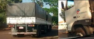 Entre as carretas que cruzam o perímetro urbano de Campo Mourão, nem a Fertimourão do ex-prefeito Tauillo Tezelli perdoa. Essa aí foi vista nesta quarta-feira, na av. Guilherme de Paula Xavier, perto da Ford.