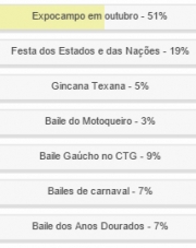 Bailes gaúchos no CTG completou o pódio, com 9%.