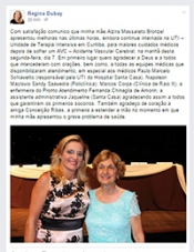 Dona Alzira Bronzel, mãe da prefeita Regina Dubay, apresentou melhoras nas últimas horas.