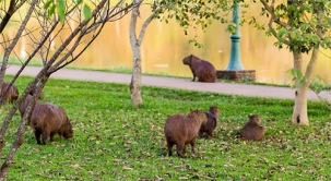 “Reunião de capivaras, nesta quinta-feira à tarde, no Parque do Lago, em Campo Mourão”. Paula Fernandes