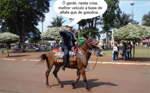 O clic é desta segunda-feira, em Peabiru, onde também teve desfile em comemoração ao Dia da Independência. O prefeito Claudinei Minchio aproveitou para, de terno e gravata e tudo, para dar uma voltiha a cavalo pela avenida. Ah, em época de crise e queda no fPM, melhor ir se acostumando...