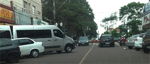 “Na Rua Brasil, às 11h30 desta sexta-feira. Van entra de ré no estacionamento em diagonal e fecha quase toda a pista em pleno centro da cidade”.