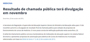 Foi adiada para o dia 10 de novembro a homologação das faculdades com direito a curso de medicina.