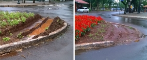 Até quando Campo Mourão vai permitir que carretas continuem passando pelo centro e detonando os canteiros da av. Capitão Índio Bandeira? Neste fim de semana aconteceu de novo. O caminhão destruiu o canteiro das esquinas da ruas Brasil e Harrison José Borges.