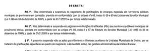 Também estão suspensas as funções gratificadas a servidores de carreira.