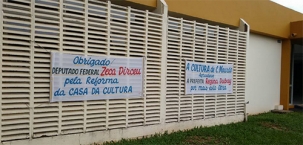 Fez um mês esta semana que foi inaugurada a revitalização da Casa da Cultura de Campo Mourão. As faixas agradecendo o deputado federal Zeca Dirceu e enaltencendo a prefeita Regina Dubay, no entanto, continuam por lá. A obra foi fruto de emenda do parlamentar petista. Hummmmmm...