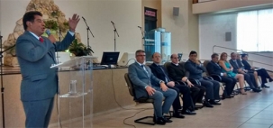 Seis vereadores e a prefeita Regina Dubay participaram na manhã deste domingo de sessão solene da Câmara na 1ª Igreja Presbiteriana Renovada. Isso mesmo: mais uma sessão dentro de um templo religioso. Desta vez foi para entregar a Comenda 10 de Outubro para a igreja e uma moção ao pastor Lauro Celso de Souza. Aliás, o pastor fez um discurso bem crítico aos políticos. Não poupou ninguém.
