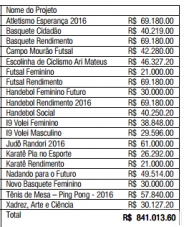 São 19 projetos, num total de R$ 841 mil.