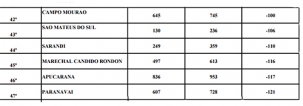 Grandonas como Curitiba, Maringá e Cascavel ficaram bem pra trás.