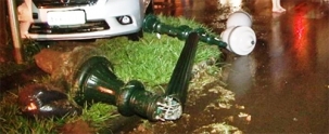 Não bastassem serem chamados de “feios” por alguns, de “gastadores de energia” por outros, de “superfaturados” pelo Ministério Público e até de serem proibidos pela Câmara, os postes republicanos de Campo Mourão ainda passam por isso. A foto é de quinta-feira à noite, quando dois carros bateram e sobrou para o poste. Ai-aiai-aiai! Alguém conhece um bom benzedor por aí?...