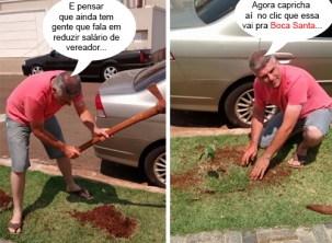 Os cliques são deste domingo. O vereador Edilson Martins diz que recebeu o pedido de uma muda de árvore e resolveu fazer “serviço completo”. Ou seja, conseguiu a muda, fez o buraco na base da picareta e ainda plantou a mudinha. Ah, pensa que é fácil, é?...