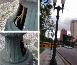 Internauta manda de Curitiba fotos de postes republicanos com a fiação exposta, na altura do chão. “Olhe a situação dos postes republicanos na capital, em frente prefeitura e perto do Palácio Iguaçu”, escreveu. Ih, será que não tem vereador em Curitiba?...