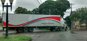 Carreta-furgão cruza o perímetro urbano de Campo Mourão e entra na av. Jorge Walter, por volta das 10h45 desta quinta-feira.