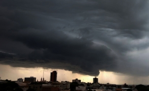 Vista de Campo Mourão, às 18h10 desta quinta-feira. Segundo o Simepar, vai chover à noite e não para tão cedo. O tempo vai ficar alternado entre parcialmente nublado, com chuvas e trovadas, e com pancadas isoladas. Isso na sexta, no sábado, no domingo e na segunda-feira. Portanto, prepare o guarda-chuvas...
