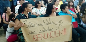 O público que superlotou a Câmara de Ubiratã levou faixas, cartões vermelhos, apitos e fez muito barulho.