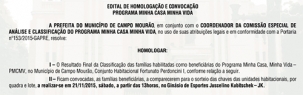 A homologação final dos mutuários foi publicada nesta terça-feira.