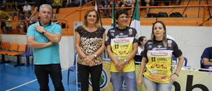 A prefeita Regina Dubay e o secretário de Estado Douglas Fabrício (Esporte e Turismo) viveram situação curiosa nesta quinta-feira, durante o intervalo de Campo Mourão x Sport/PE pela Liga Ouro de Basquete. Foram chamados para uma homenagem da Amobasquete.