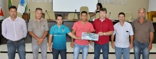 Luiziana - A prefeitura recebeu nessa terça-feira R$ 25 mil de sobras da Câmara de Vereadores nos dois primeiros meses do ano. O presidente Gilmar Batista e cinco “nobres edis” fizeram a entrega do cheque simbólico ao prefeito Mauro Slongo.