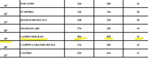 Campo Mourão ficou na 29ª posição, com saldo de 15.