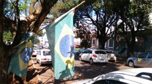 Bandeiras do Brasil foram deixadas numa árvore do canteiro central da av. Irmãos Pereira, em frente ao terminal de ônibus.