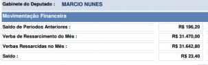 O mourãoense Márcio Nunes fechou o mês com despesas de R$ 31,6 mil.