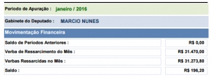 Como o caixinha do ressarcimento é de R$ 31,7 mil, o gabinete encerrou o mês com R$ 196 de sobras.