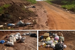 A estrada rural que dá acesso ao aterro sanitário, a partir da Estrada Boiadeira, está sendo usada como depósito clandestino de lixo. Resíduos estão sendo jogados às margens da via, incluindo pneus velhos e animais mortos. Fotos: Rafael Silvestrin