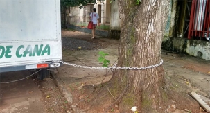 Na av. Goioerê, esquina com rua Santa Catarina, o dono de um carrinho de venda de caldo de cana não quis se arriscar, não. O carrinho até que fica por ali mesmo quando o negócio está fechado, mas não sem ter uma corrente prendendo tudo junto à arvore da calçada.