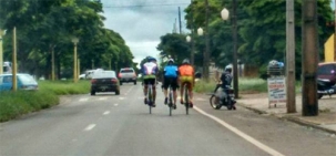 “Ciclistas andam pela av. John Kennedy, no Lar Paraná. Detalhe: enquanto os carros precisam desviar deles, a ciclovia está logo ali do ladinho, no canteiro central. Justo na Kennedy, a única via do perímetro urbano que tem pista para as bicicletas....