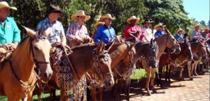 Que tal aproveitar as fárias de janeiro para fazer uma viagem de 160 km. A cavalo! É que estão fazendo cerca de 60 cavaleiros e amazonas que partiram nesta quarta-feira de Mamborê rumo a Lunardelli. A chegada está prevista para domingo, onde o grupo participará de missa no Santuário de Santa Rita de Cássia.