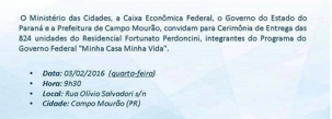 O conjunto tem 824 casas e foi feito através do programa “Minha casa, minha vida”, do governo federal.
