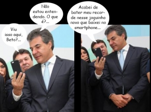 O clic é do início da semana, no Palácio Iguaçu, em Curitiba, onde aconteceu a solenidade de posse dos novos secretários de Estado. O governador Beto Richa, é claro, comandou a cerimônia. O deputado Márcio Nunes esteve por lá e foi mostrar alguma coisa no celular para o governador. Ah, deve ser alguma postagem da Boca Santa...