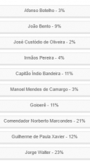 A av. Guilherme de Paula Xavier completou o pódio, com 12%.