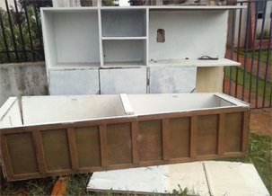 “Armários velhos jogados na calçada em travessa do jardim Santa Nilce”.