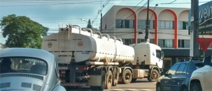 Carreta de combustíveis cruza o centro de Campo Mourão e entra pela av. Capitão Índio Bandeira.