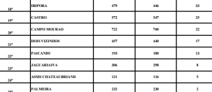 Em abril Campo Mourão ficou na 20ª posição no Paraná, à frente de Londrina (56ª), Maringá (58º) e Curitiba (60ª).
