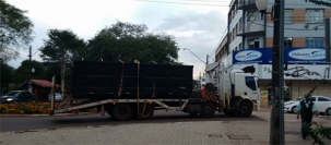 Caminhão carregado cruza a av. Capitão Índio Bandeira e vira pela rua Brasil, passando em frente à prefeitura. O flagra é da última sexta-feira.