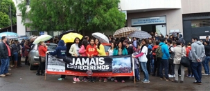 Cerca de 200 professores participaram de mobilização nesta quarta-feira em frente ao Núcleo Regional de Educação.