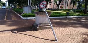 Na av. Irmãos Pereira, esquina com rua Brasil, a placa que indica mão única apareceu assim, quebrada. Sozinha é que não quebrou, né?...