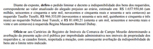 A indisponibilidade é de R$ 1,6 milhão pra Tauillo, R$ 966 mil para Tureck e R$ 81 mil para Regina.
