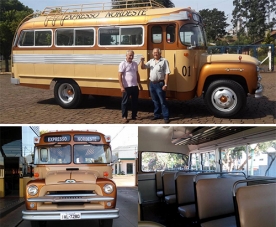 Olha aí a nova aquisição do Expresso Nordeste. Um busão Chevrolet Brasil 1961. Restauradíssimo. A restauração foi feita em empresa especializada de Erechim/RS e levou dois anos. A foto de cima é o momento da entrega da relíquia ao empresário Germano Boiko. O ônibus, que lembra o início da Nordeste, em 1963, será usado em feiras e exposições.