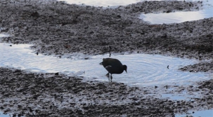 Ave passeia por trecho assoreado do lago do Parque do Lago, em Campo Mourão. Thiago Mourão