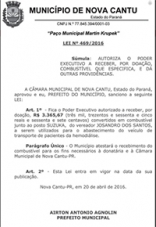 Ela autoriza a prefeitura a receber uma doação e R$ 3,3 mil em combustíveis num posto da cidade.