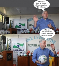 O secretário de Estado Douglas Fabrício seguiu percorrendo a região no fim de semana para a entrega de kits de materiais esportivos. E dê-lhe bola para os prefeitos. Nos cliques acima ele aparece fazendo a distribuição em Altamira do Paraná, em evento que teve a presença da prefeita Elza Aguiar.