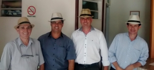 O vereador Olivino Custódio usando chapéu não é novidade. Nesta pose, ele ganhou o reforço de Jorge Pereira, Edilson Martins e Toninho Machado. Foi só uma brincadeira, é claro. Em todo caso, se a atividade anda esquentando muito a cabeça dos “nobres edis”...