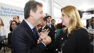 Olha aí a prefeita Regina Dubay com o ministro da Saúde, Artur Chiori.